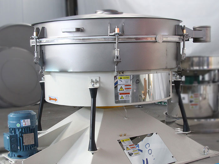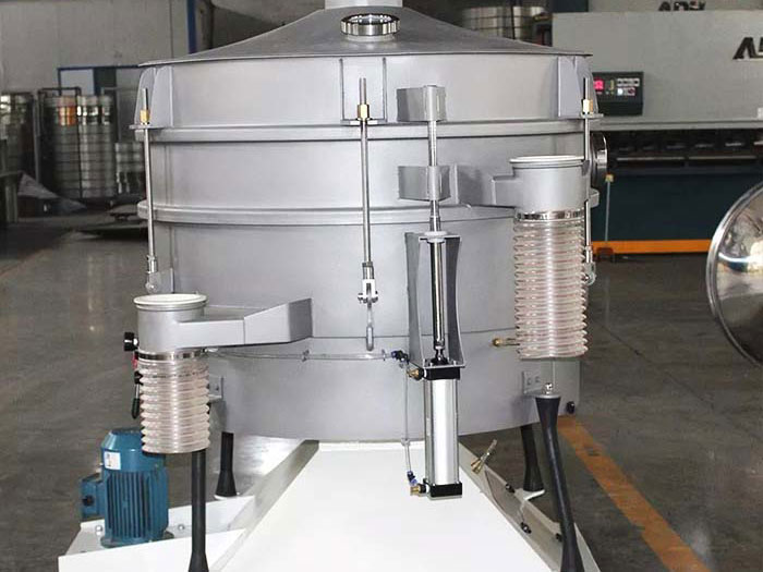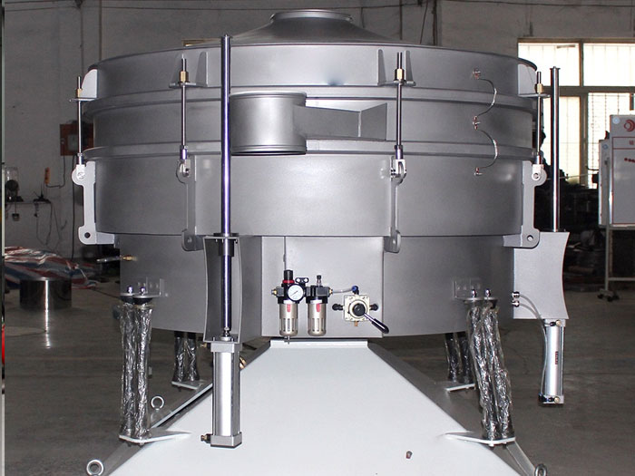 看細(xì)節(jié):進(jìn)料口 出料口 篩網(wǎng) 振動電機 橡膠拉簧 氣動升降裝置