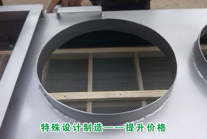 大漢機(jī)械專業(yè)研發(fā)生產(chǎn)的降溫直線振動(dòng)篩這對(duì)高溫特性物料設(shè)計(jì)研發(fā),在進(jìn)料口底部或箱體下側(cè)端增加了風(fēng)機(jī)降溫冷卻系統(tǒng),該裝置可有效攔截大顆粒并緩沖物料對(duì)篩網(wǎng)的沖擊,延長(zhǎng)篩網(wǎng)使用壽命(該裝置針對(duì)部分物料,不需要可去除)。物料在進(jìn)入設(shè)備時(shí),位于進(jìn)料口底部或箱體下側(cè)端的風(fēng)機(jī)降溫冷卻系統(tǒng)對(duì)其進(jìn)行降溫作業(yè)。這樣的特殊設(shè)計(jì)制造,也在一定程度上提升了價(jià)格。