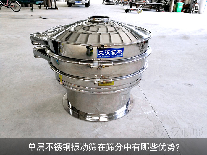 大漢機(jī)械生產(chǎn)單層不銹鋼振動(dòng)篩是指只安裝一層篩網(wǎng)的不銹鋼材質(zhì)的振動(dòng)篩,一般來(lái)說(shuō)使用單層篩網(wǎng)主要就是來(lái)進(jìn)行簡(jiǎn)單的篩分、除雜、過(guò)濾等工作,它具有良好的防腐蝕防銹功能,經(jīng)過(guò)內(nèi)外拋光后的不銹鋼表面光滑無(wú)毛刺現(xiàn)象,清理簡(jiǎn)單,完全符合國(guó)家衛(wèi)生的制定標(biāo)準(zhǔn)。下面小編就為您說(shuō)一說(shuō)單層不銹鋼振動(dòng)篩在篩分中有哪些優(yōu)勢(shì)?
