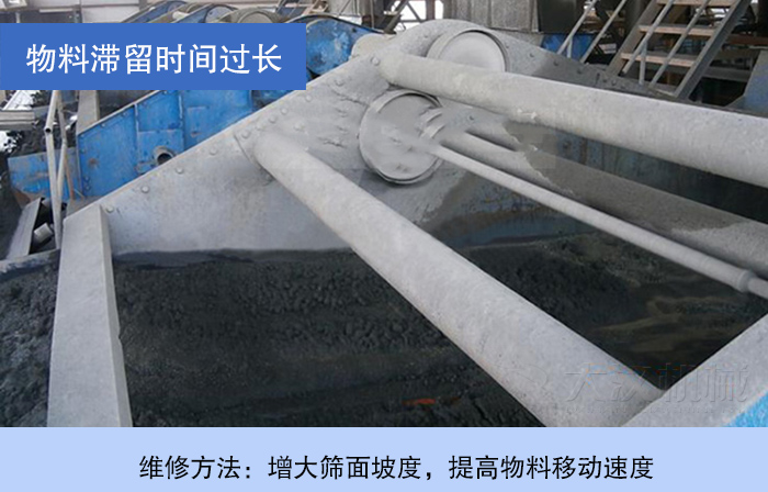 礦石在篩網(wǎng)上移動(dòng)慢,礦石移動(dòng)速度過慢,導(dǎo)致篩面上積礦過多,使圓振篩總是在超負(fù)荷的狀態(tài)下運(yùn)行,從而導(dǎo)致篩網(wǎng)破損快,撓性聯(lián)軸器撕裂、彈簧損壞、大梁斷裂、箱體開裂等一系列故障。