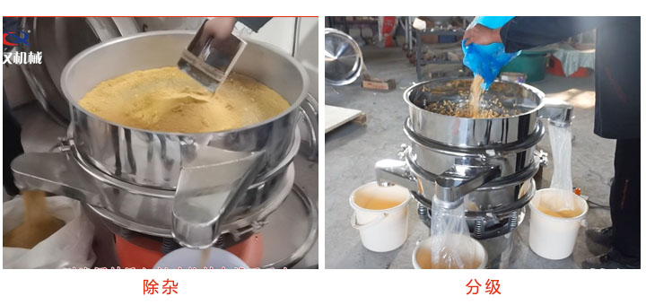 1、除雜:使用單層食品專用旋振篩可以達(dá)到除雜的目的,如篩分出碎茶渣、芝麻中的小石子、豆?jié){中未打碎的豆子等;