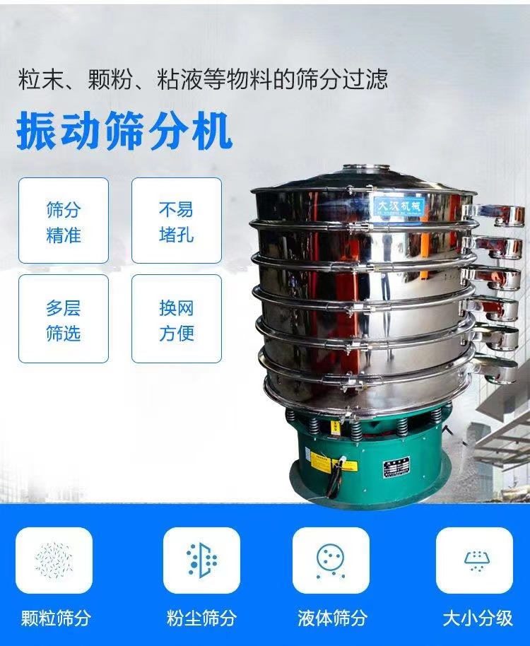 以上是對振動篩分機應(yīng)用的介紹,振動篩分機專為提高粉末、顆?;蛞后w產(chǎn)品的質(zhì)量而設(shè)計,用于產(chǎn)品的檢查篩選,通過增加篩層數(shù),產(chǎn)品以不同的細度進行篩分,以達到精確的粒度分布。