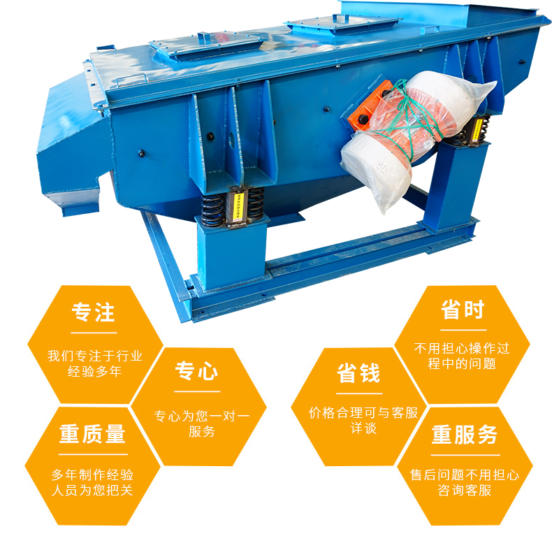 碳鋼直線振動篩適用于粒度在0.074~10mm,含水量小于7%的無粘性干式粉末、顆粒,主要用于磨料、化工、塑料、陶瓷、冶金、建材、糧食及化肥行業(yè)。
